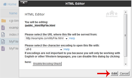 4. Right-click on the file. Then click on Edit or HTML Edit in the Context Menu.
