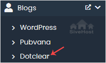 On the left side, locate the Blogs category. Click on it and then on the Dotclear link that appears.