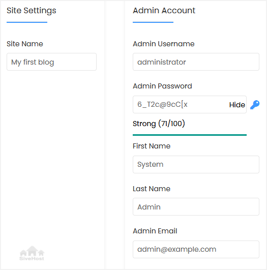 • Admin Email: Your e-mail address.