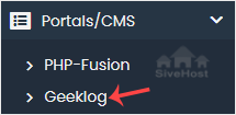 4. On the left side, locate the Portal/CMS category. Click on it and then on the Geeklog link that appears.